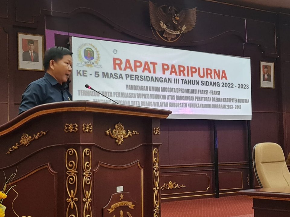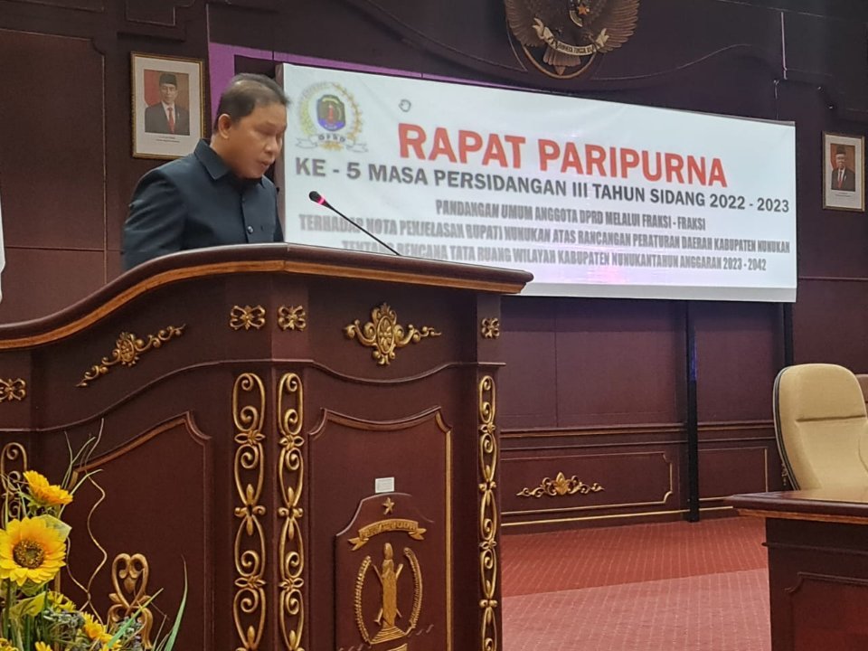 NUNUKAN, Kaltaraaktual.com-Dewan Perwakilan Daerah (DPRD) Kabupaten Nunukan menggelar Pemandangan Umum Fraksi terhadap penyampaian Nota Penjelasan rancangan peraturan daerah kabupaten Nunukan tentang Rencana Tata Ruang Wilayah Kabupaten Nunukan 2023-2024 pada Selasa, (30/05/23).