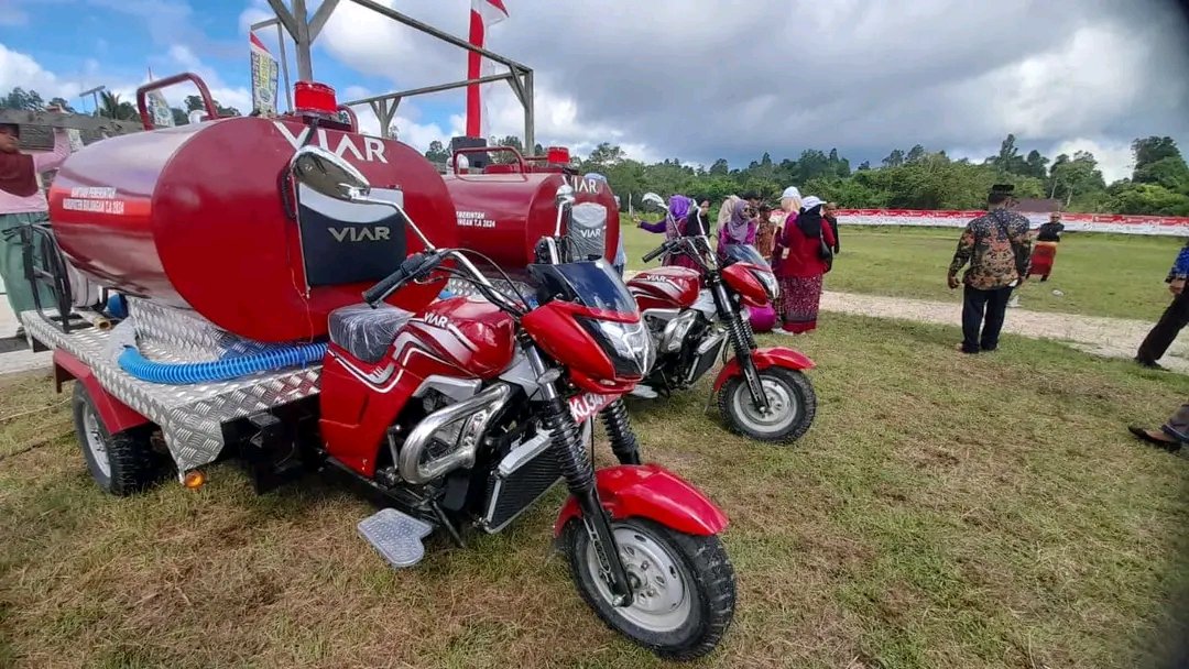 Bupati Bulungan, Syarwani, usai upacara peringatan Hari Ulang Tahun Republik Indonesia (HUT RI) ke-79 di Desa Salimbatu menyerahkan secara simbolis 2 unit motor roda 3 pemadam kebakaran untuk kecamatan.