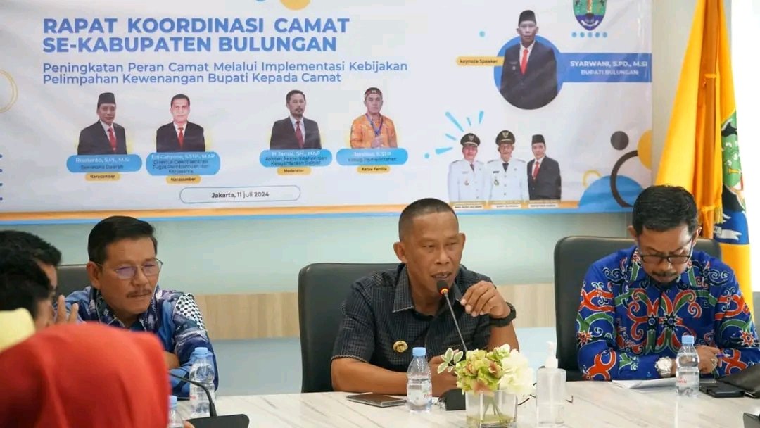 Kaltaraaktual.com- Sebagai langkah strategis dalam upaya meningkatkan efisiensi dan efektivitas pelayanan publik, Saya membuka Rapat Koordinasi (Rakor) Camat se-Kabupaten Bulungan, bertempat di Gedung Badan Penghubung Provinsi Kalimantan Utara (Kaltara) Jalan Kramat Kwitang, Jakarta Pusat, Kamis (11/7/24).
