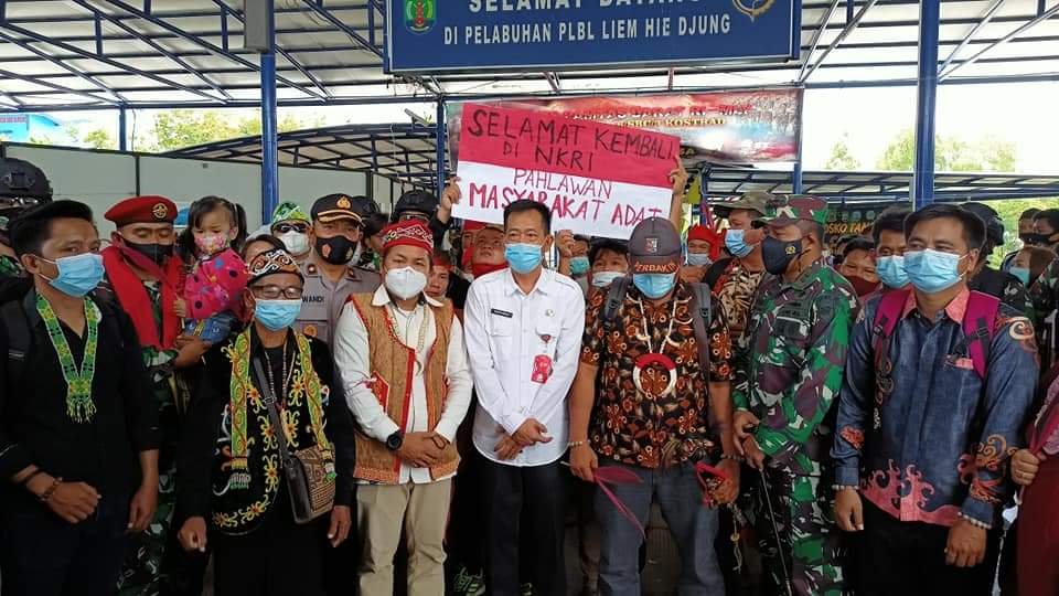 Ke delapan warga Kabupaten Nunukan inipun disambut dengan ritual adat Dayak Agabag dengan tujuan untuk kembali memulihkan semangat warga yang telah ditahan sejak tanggal 9 Februari 2021. Foto: Humas