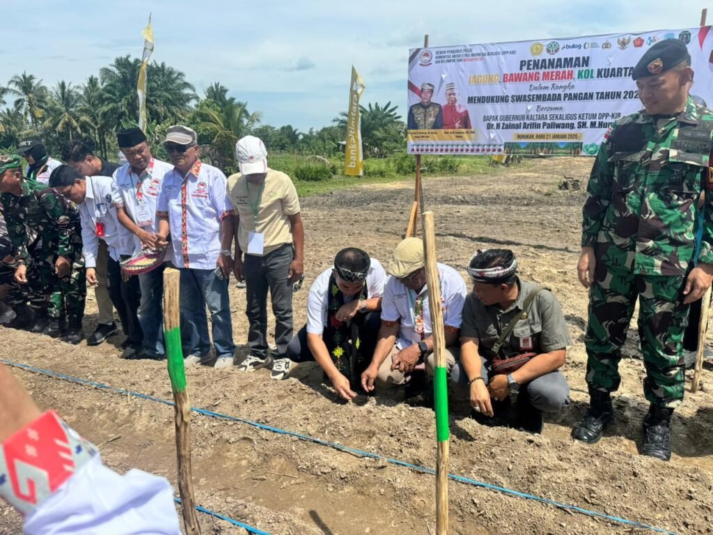 NUNUKAN, Kaltaraaktual.com– Asisten Perekonomian dan Pembangunan Setdaprov Kalimantan Utara (Kaltara), Dr. Bustan, SE., M.Si., mengikuti kegiatan Penanaman Jagung, Bawang Merah, Kol Kuartal V dalam Rangka Mendukung Swasembada Pangan Tahun 2026, digelar di Lahan Kelurahan Salisun, Nunukan Selatan, Rabu (21/01/26).
