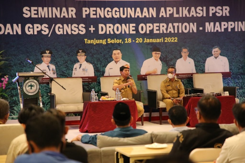 Mendukung kemajuan petani kelapa sawit di Kaltara, Pemerintah Provinsi Kalimantan Utara (Kaltara) bersama dengan Asosiasi Petani Kelapa Sawit Indonesia (APKASINDO) menggelar Seminar Penggunaan Aplikasi PSR dan GPS/GNSS + Drone Operation – Mappingd di Hotel Luminor, Selasa (18/1).
