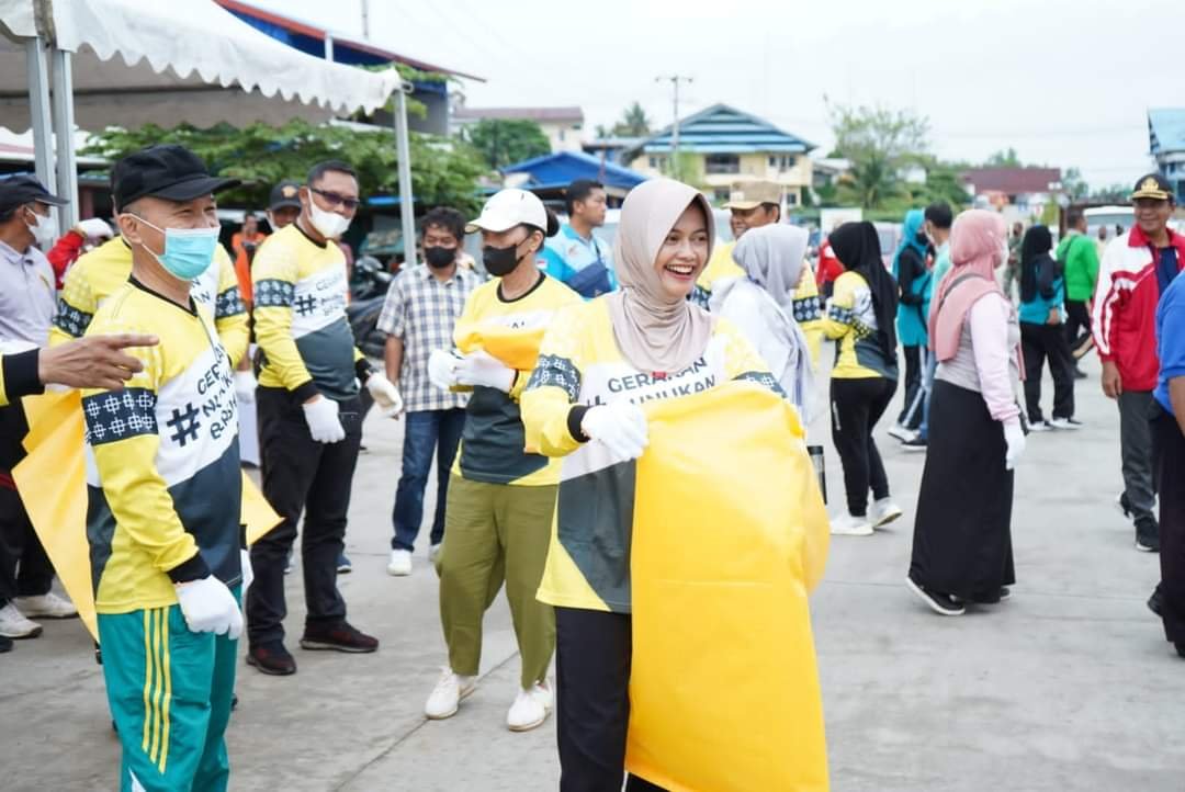 NUNUKAN, Kaltaraaktual.com– Sebelum melakukan Kerja bakti Bupati Nunukan Hj. Asmin Laura Hafid, terlebih dahulu melakukan penyerahan karung kepada peserta, di kegiatan World Cleanup Day (WCD) tahun 2022, dalam rangka 13 juta Menuju Indonesia Bersih dan Bebas Sampah bertempat di pelabuhan tunon taka, Jum’at (14/10/22)