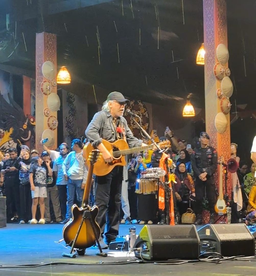 “Jangan rusak bumi karena kita hidup dari nafasnya. Selama hutan dan sungai bersuara, engkau abadi dalam nyanyian Nusantara,” ucap Iwan di tengah penampilannya yang hening namun sarat makna.