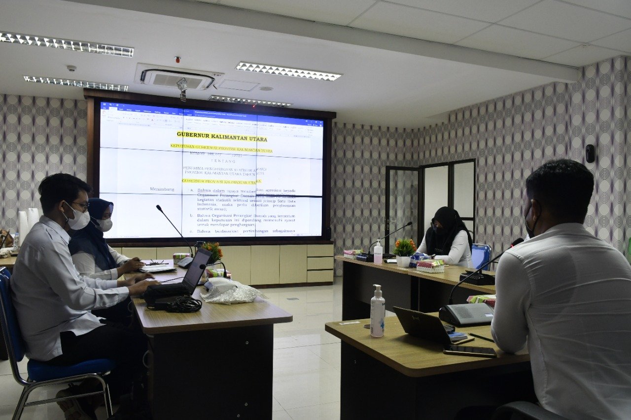 Menggelar rapat penentuan pemenang Statistics Award 2021 di Ruang Command Center DKISP Kaltara, kemarin. Foto: DKISP Kaltara