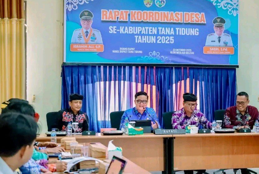 TIDENG PALE, Kaltaraaktual.com- Dalam upaya memperkuat koordinasi antara pemerintah desa dan pemerintah kabupaten, Bupati Tana Tidung (KTT) Ibrahim Ali memimpin langsung Rapat Koordinasi (Rakor) Desa se-Kabupaten Tana Tidung, Rabu (23/10/25).