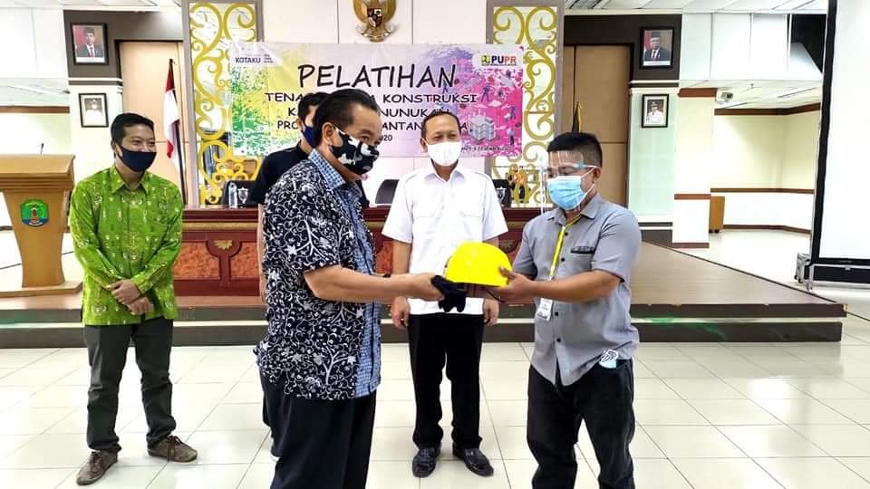 Pembukaan pelatihan ditandai dengan penyerahan secara simbolis Alat Pelindung Diri (APD) berupa baju, sepatu, helm, sarung tangan, dan kacamata yang keseluruhan difasilitasi Bina Jasa Konstruksi PUPR Pemprov Kaltara.