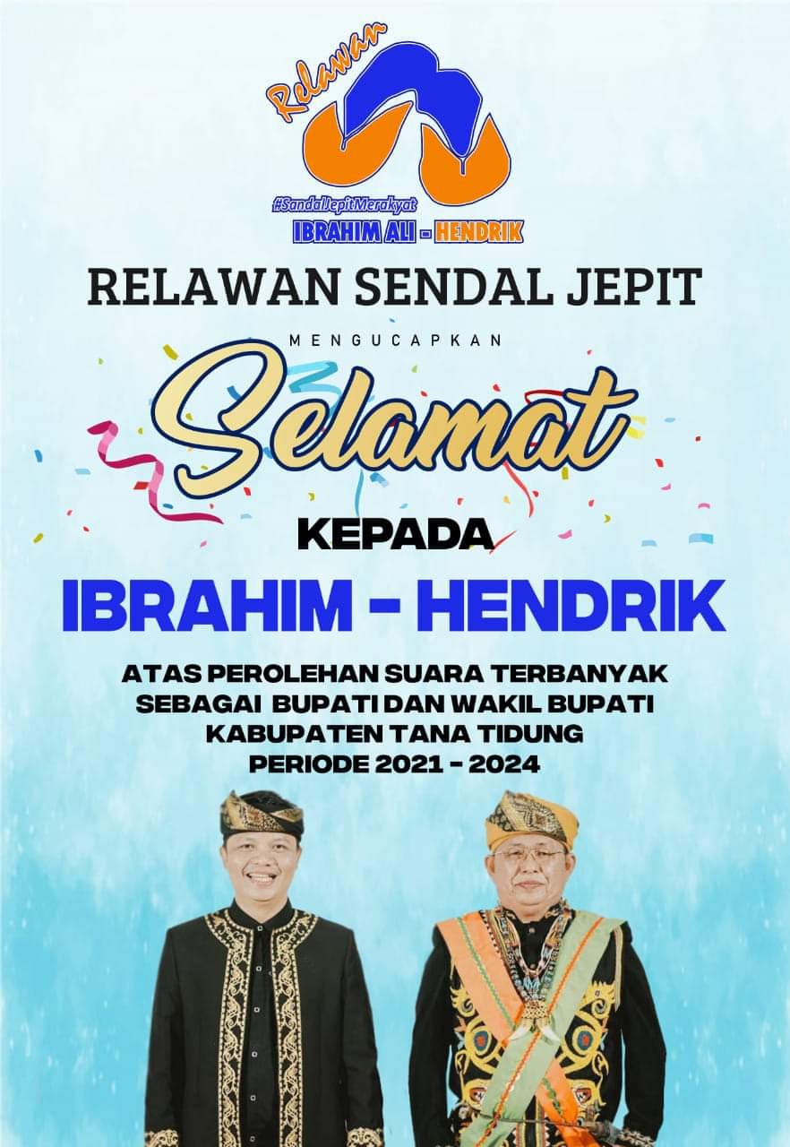 “tentu ya, berkat kerja keras tanpa kenal lelah dari tim mengantarkan kami kepada hasil yang baik. Tim ini luarbiasa loyal dan militan dalam menyosialisasikan program-program BERSIH kepada masyarakat dan mendampingi masyarakat selama ini, sehingga masyarakat yakin dengan kepemimpinan Ibrahim Ali-Hendrik, semoga tidak kendor sampai kami menyelesaikan Amanah memimpin Kabupaten Tana Tidung,”demikian. (*)