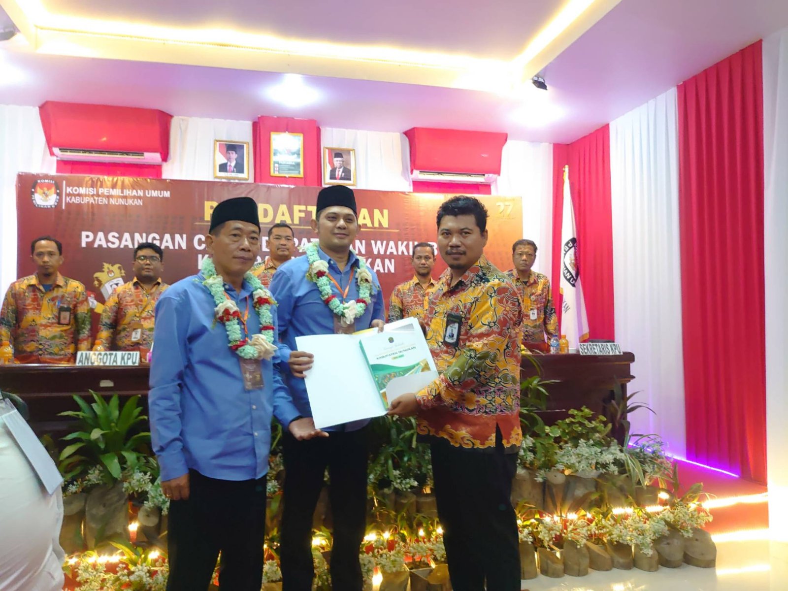 NUNUKAN, Kaltaraaktual.com- Pasangan calon bupati dan wakil bupati Nunukan, Andi Akbar dan Serfianus, resmi mendaftar ke Komisi Pemilihan Umum (KPU) Nunukan untuk pemilihan kepala daerah yang akan berlangsung pada 27 November 2024.