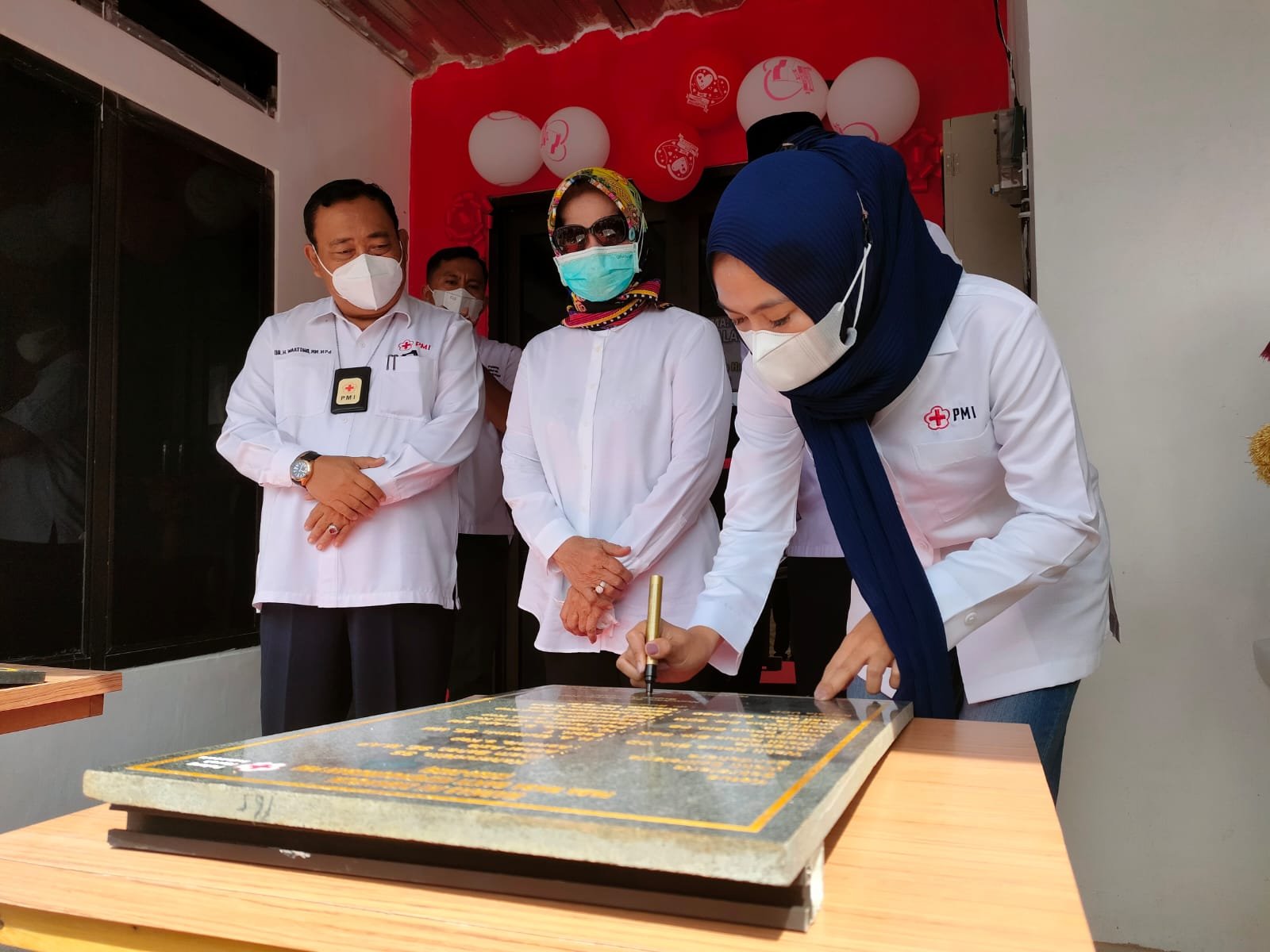 Acara tambahan setelah Apel HUT PMI Bupati Laura melakukan penandatanganan Prasasti dan Pelepasan Tirai sebagai simbol peresmian Markas PMI.