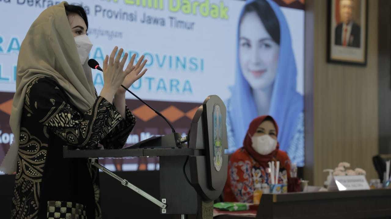 Dalam sambutannya istri Wakil Gubernur Jawa Timur tersebut mengungkapkan perbedaan tantangan antarkedua provinsi.