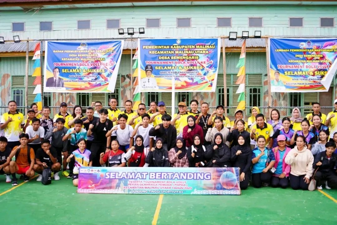 MALINAU, Kaltaraaktual.com- Sekretaris Daerah Kabupaten Malinau, Ernes Silvanus,membuka secara resmi Pekan Olahraga Pemuda (POPDA) Kecamatan Malinau Utara yang ditandai dengan dimulainya Turnamen Bola Voli Lokal Prestasi se-Kecamatan Malinau Utara. Kegiatan ini menjadi rangkaian peringatan Hari Sumpah Pemuda 2025 dan digelar di Lapangan Bola Voli Desa Semengaris, Senin (24/11/25) sore.