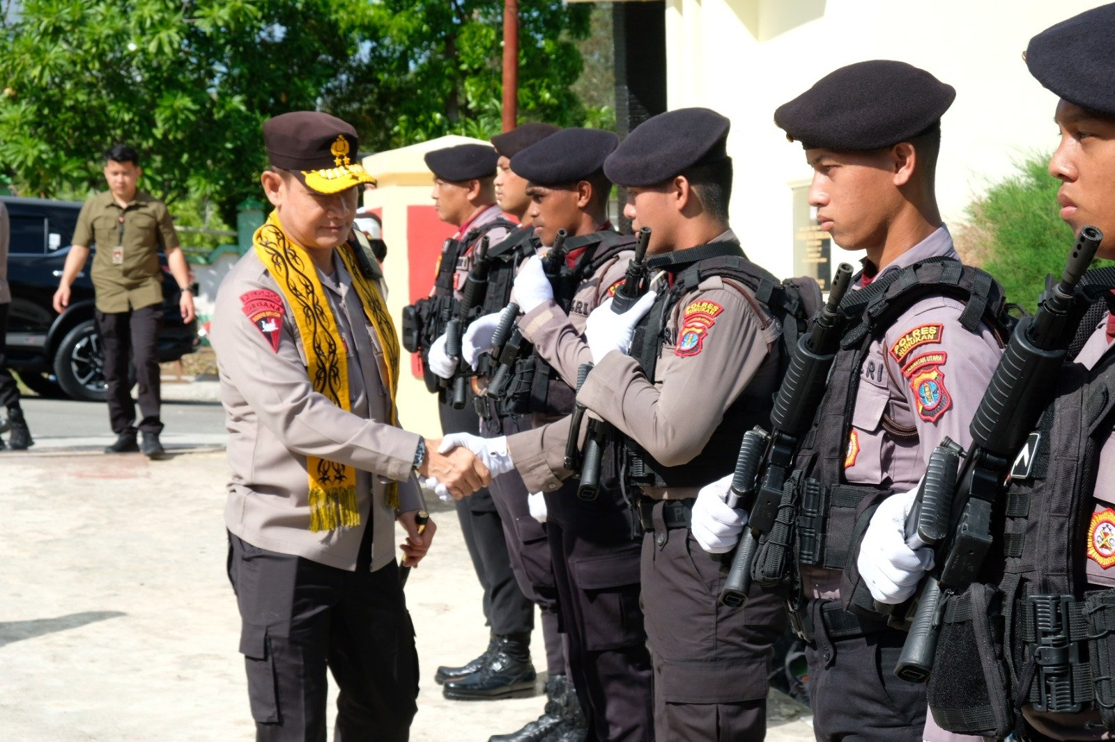 Kapolda Kaltara yang di damping oleh para PJU dan Kapolres Nunukan melakukan pengecekan kesiapan dari personil, kendaraan dan alat-alat yang akan digunakan dalam melaksanakan pemilu nanti.