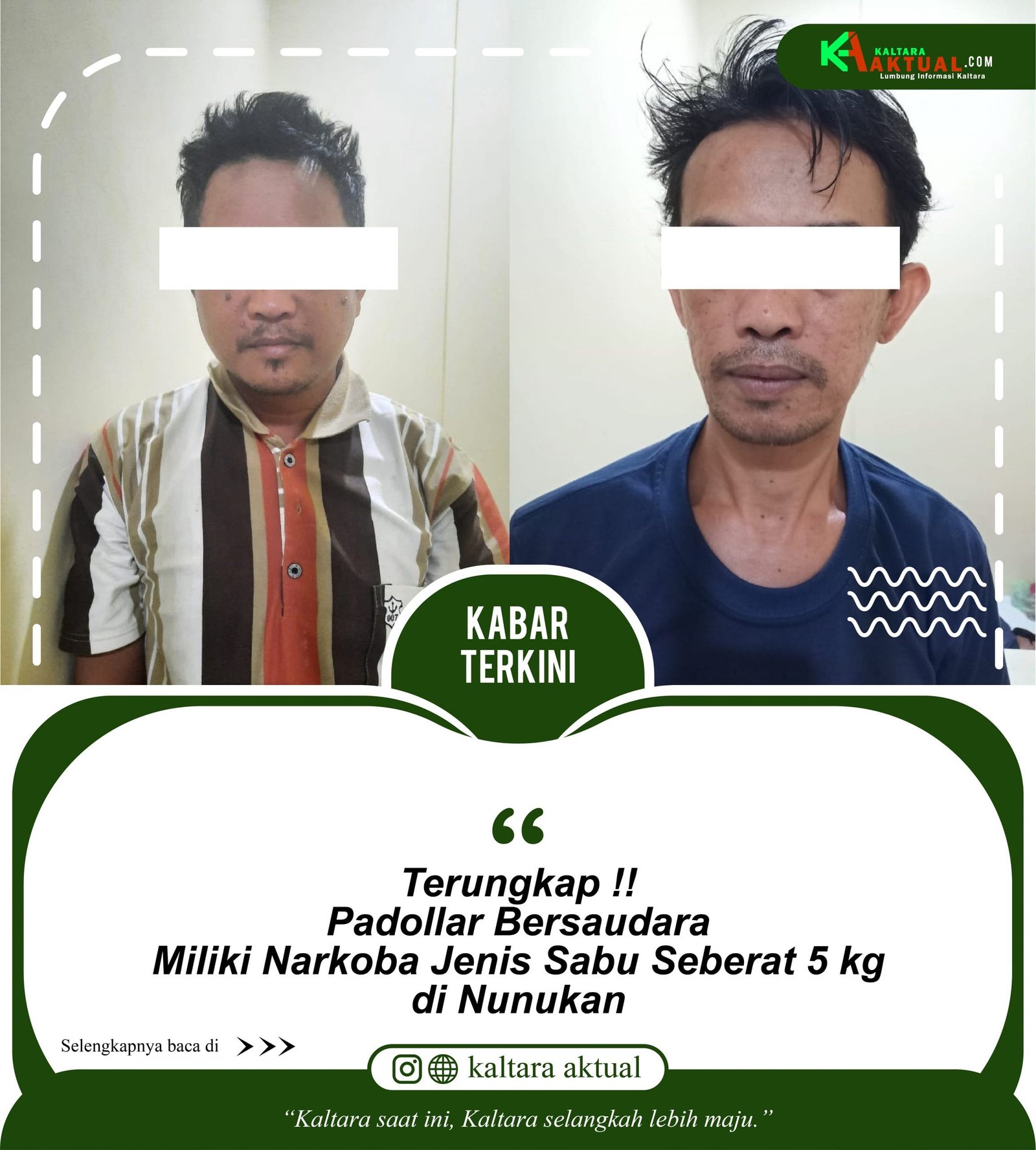 NUNUKAN, Kaltaraaktual.com– Satresnarkoba mengamankan Padollar bersaudara dengan kasus kepemilikan narkoba jenis sabu seberat 5 kg pada hari Rabu malam pukul 18.10 Wita, (26/5/2021).