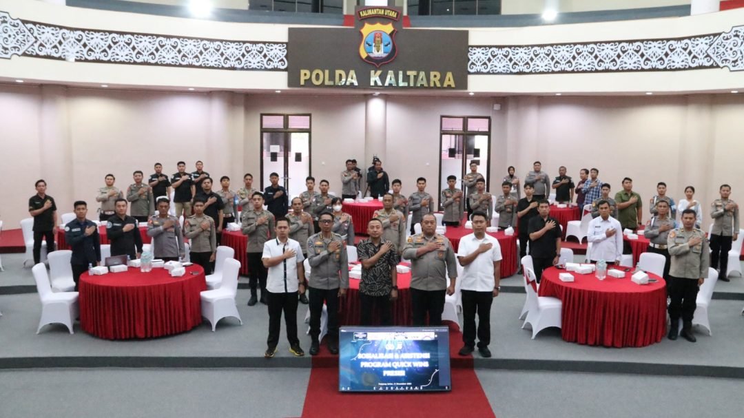 TANJUNG SELOR, Kaltaraaktual.com- Tim Posko Presisi Mabes Polri yang dipimpin oleh Kabag Duknis Rotekinfo Div TIK, Kombes Pol. Hariwiyawan Harun beserta rombongan melaksanakan kegiatan Sosialisasi dan Asistensi Quick Wins Presisi. Acara ini berlangsung di Ruang Rupatama Bhara Daksa Polda Kaltara pada hari Kamis (11/12/25).