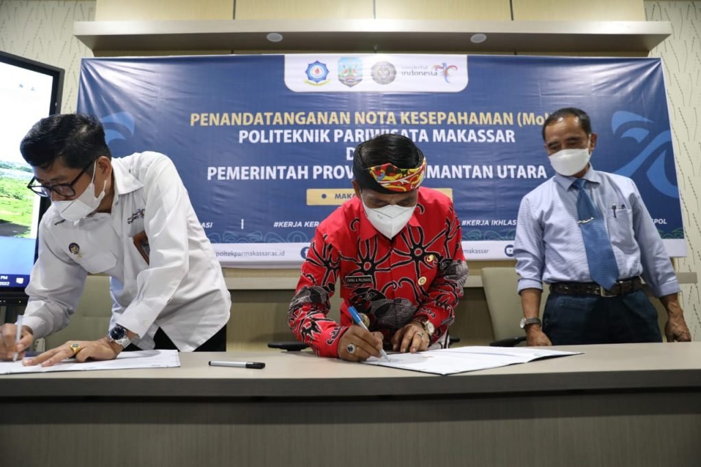 MAKASSAR, Kaltaraktual.com– Untuk meningkatkan kualitas pariwisata di Kaltara, Pemerintah Provinsi (Pemprov) Kalimantan Utara menggandeng Politeknik Pariwisata Makassar. Hal ini ditandai dengan ditandatanganinya Memorandum of Understanding (MoU) kerjasama oleh Gubernur Kalimantan Utara (Kaltara) Drs H Zainal A Paliwang SH M.Hum bersama Poltek Pariwisata Makassar, Kamis (12/5/2022) petang.