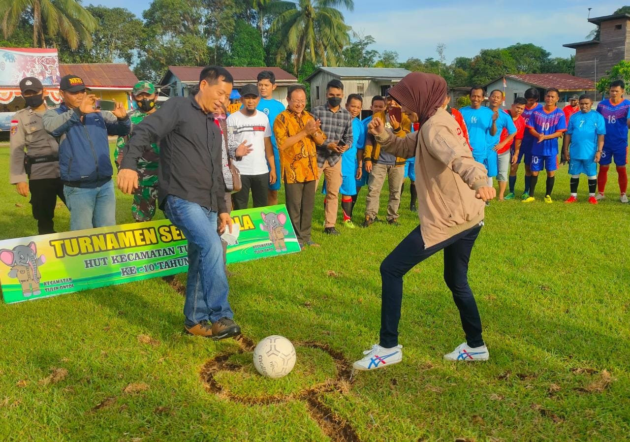 NUNUKAN, Kaltaraaktual.com– Rangkaian HUT ke-10 Kecamatan Tulin Onsoi Kabupaten Nunukan Kalimantan Utara (Kaltara) menyelenggarakan Turnamen Sepak Bola dan Bola Voli Putri, dalam acara ini Bupati Nunukan Hj.Asmin Laura Hafid menyempatkan hadir langsung ditengah-tengah masyarakat, pada Kamis, (18/11/21) di Lapangan Bola Desa Sekikilan.