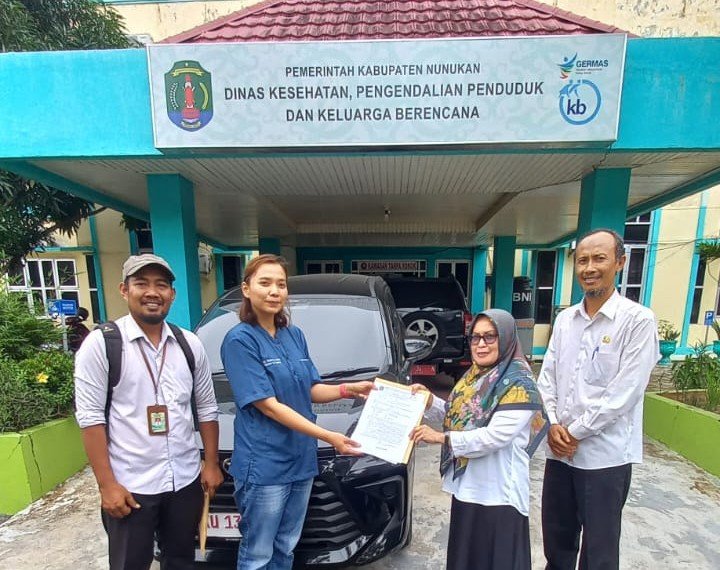 NUNUKAN, Kaltaraaktual.com- Dinas Kesehatan Pengendalian Penduduk dan Keluarga Berencana melalui bidang Sarana dan Prasarana (Sapras) menyerahkan satu unit mobil operasional kepada dr. Nadia sebagai dr. Spesialis rumah sakit pratama (RSP) Sebatik di halaman dinas kesehatan pengendalian penduduk dan keluarga berencana melalui penandatanganan berita acara serah terima, Rabu (19/6/24).