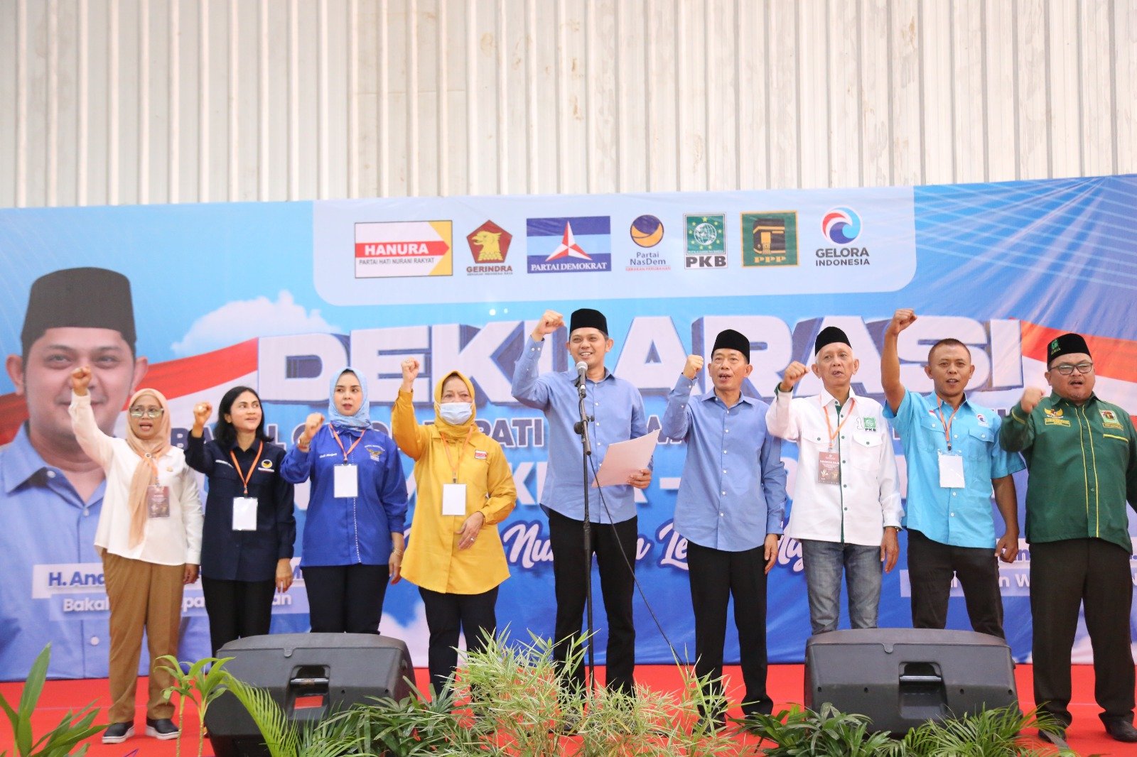 Deklarasi yang dihadiri oleh parpol pengusung dan pendukung, yakni parpol Hanura, Gerindra, Nasdem, Demokrat, PKB, PPP dan Gelora, para pendukung, relawan dan simpatisan pasangan GAAS berlangsung dengan penuh semangat dan kondusif. (mrj/tfk/**)