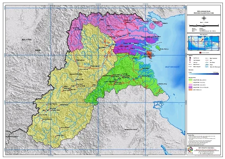 Provinsi Kalimantan Utara terletak pada posisi antara 114035’22” – 118003’00” Bujur Timur dan antara 1021’36” – 4024’55”