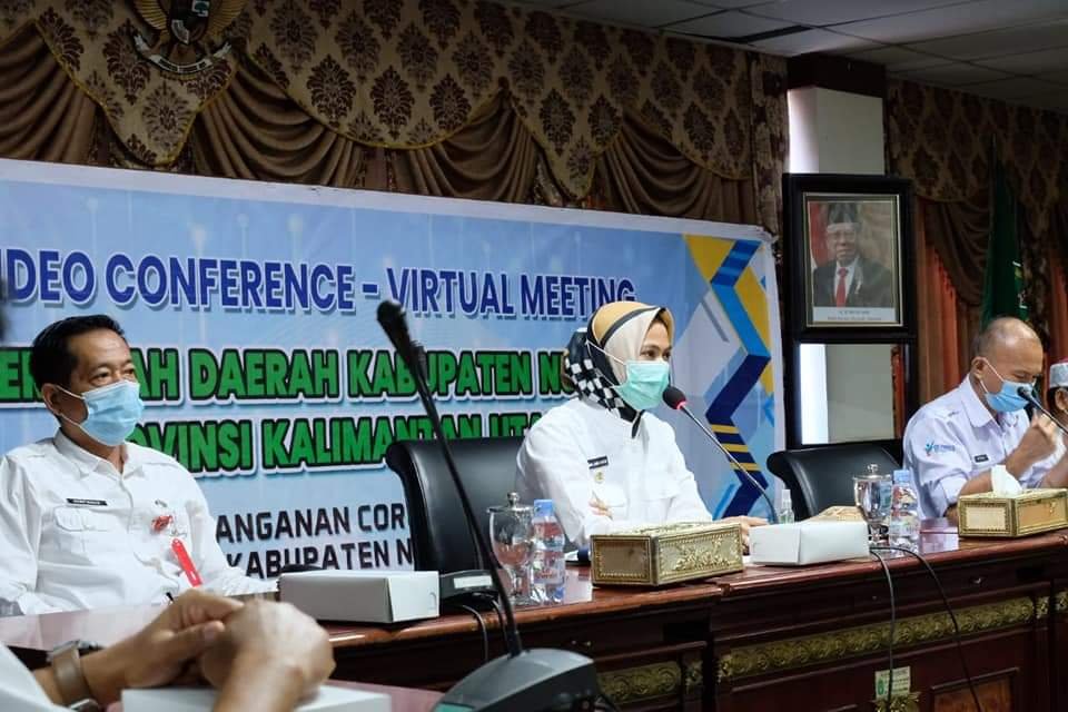 Bupati Nunukan Hj. Asmin Laura Hafid memimpin rapat secara Virtual persiapan program Vaksin Covid-19 di ruang pertemuan VIP Lt IV Kantor Bupati Nunukan, Rabu (27/01).