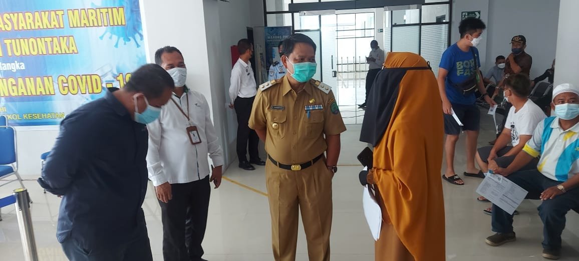 Wakil Bupati Nunukan saat meninjau proses vaksinasi di Pelabuhan Tunon Taka Nunukan.