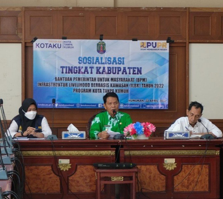 NUNUKAN, Kaltaraaktual.com– Dinas Perumahan Kawasan Pemukiman dan Pertanahan (DPKPP-KP) Kabupaten Nunukan bersama Program KOTAKU menggelar acara Sosialisasi Tingkat Kabupaten dalam rangka Bantuan Pemerintah untuk Masyarakat (BPM) Infastruktur Livelihood Berbasis Kawasan (ILBK) Tahun 2022 Program Kota Tanpa Kumuh.