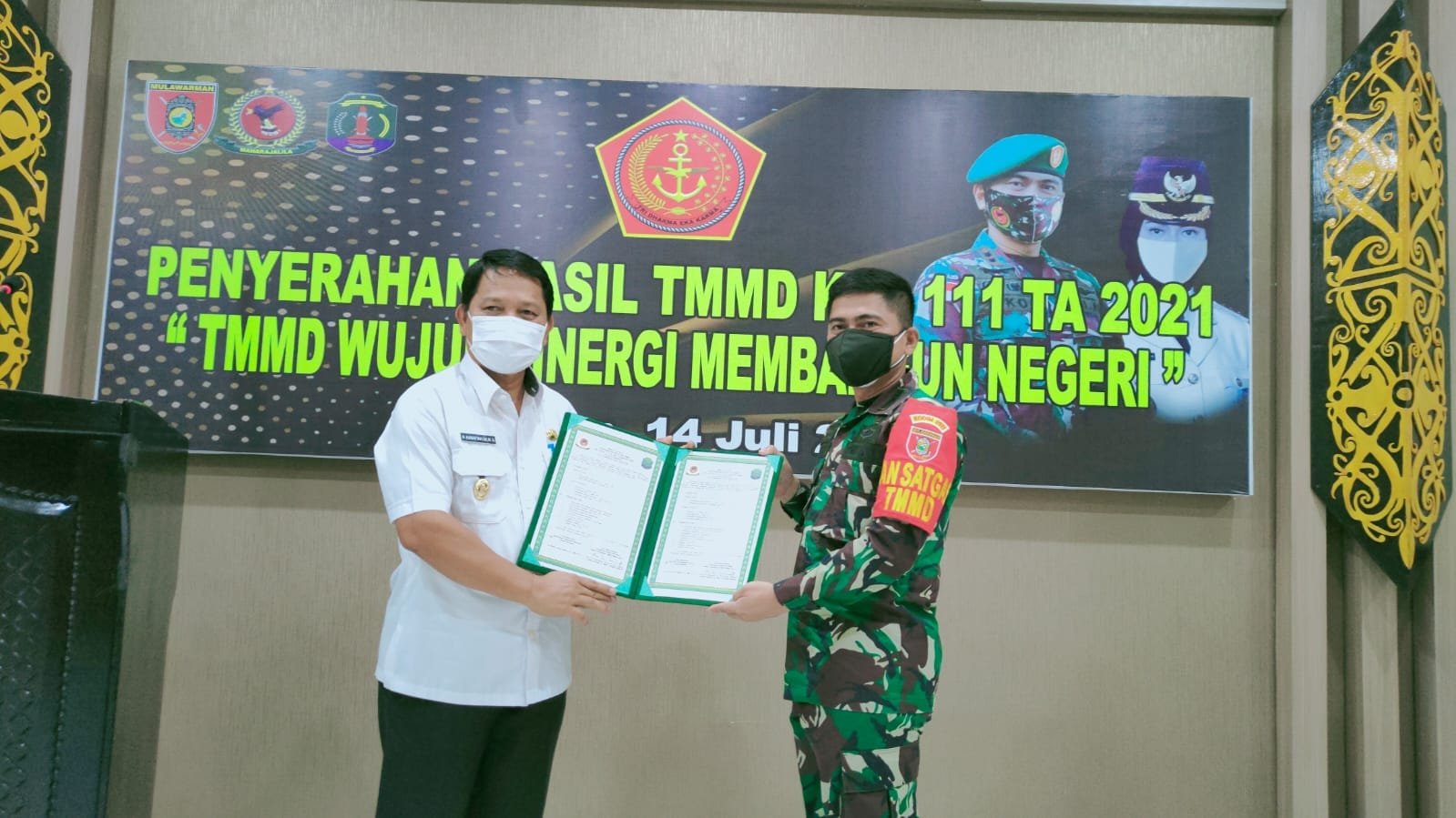 Laporan penutupan TMMD ke III. Wakil Bupati Nunukan bersama Dandim 0911 Nunukan Letkol Eko Pur Indriyanto. (14/07).