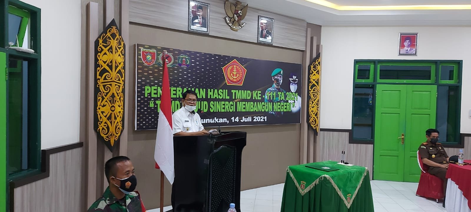 NUNUKAN, Kaltaraaktual.com– Mewakili Pemerintah Kabupaten Nunukan, Wakil Bupati Hanafiah hadiri penutupan kegiatan TNI Manunggal Membangun Desa atau TMMD wilayah perbatasan yang ke 111 di Kantor Kodim 0911 Nunukan pada Rabu, (14/07/2021).