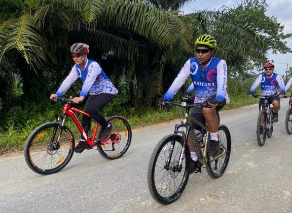 “Udara pagi yang cukup segar dan indah nya pemandangan membuat semangat para rombongan untuk bersepeda,” ucapnya.
