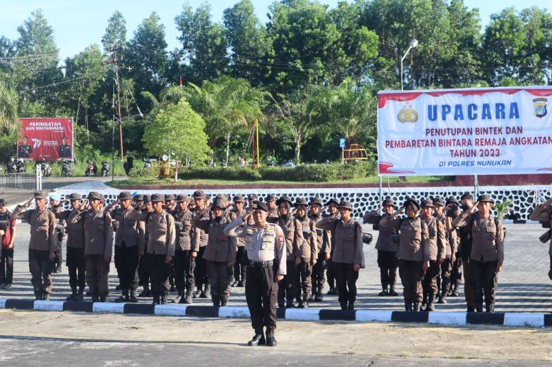 TENGGARONG, Kaltaraaktual.com– Bertempat di Lapangan SPN Bumi Jonggon Polda Kaltim, Wakapolda Kaltim Brigjen Pol Mujiyono secara resmi menutup Pendidikan Pembentukan Bintara Polri Gel I T.A. 2023, Kamis (6/7/2023).
