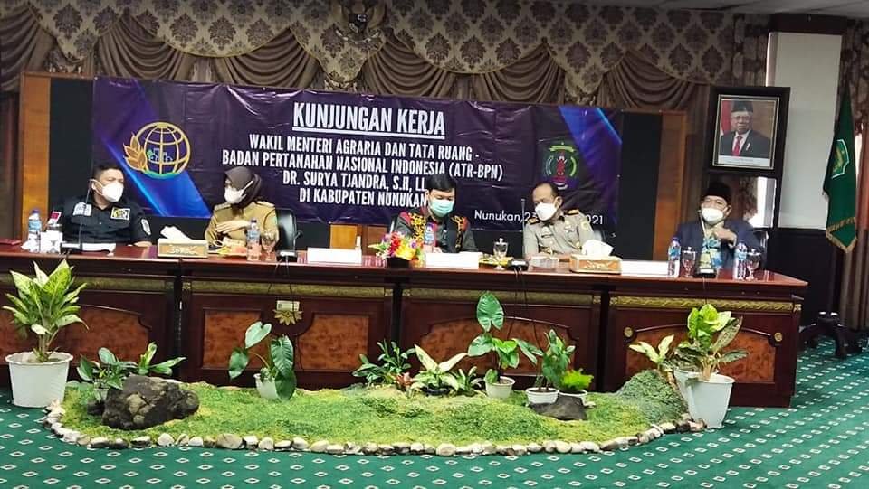 Demikian disampaikan Wakil Menteri Agraria dan Tata Ruang/Badan Pertanahan Nasional (BPN), Surya Tjandra, saat melakukan audience dengan jajaran Pemerintah Kabupaten Nunukan dan perwakilan masyarakat Kecamatan Sebuku di Kantor Bupati Nunukan, Selasa (23/3).