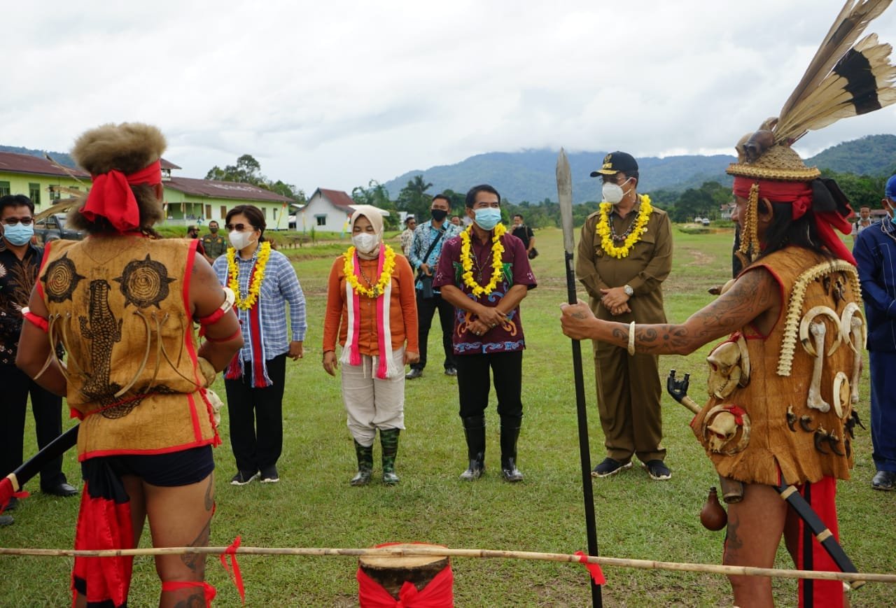 Serta lima kepala adat setempat juga turut menyambut kedatangan orang nomor satu di Kaltara ini dengan tradisi budaya Dayak.