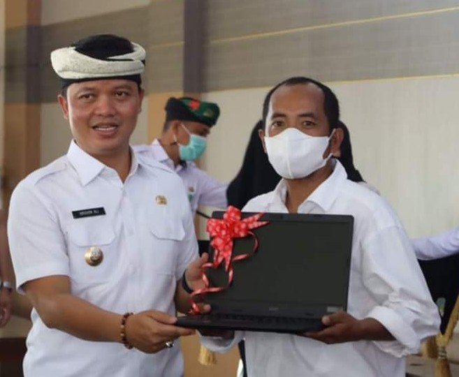 TIDENG PALE, Kaltaraaktual.com– Bupati dan Wakil Bupati Tana Tidung Ibrahim Ali dan Hendrik menyerahkan 156 laptop kepada guru-guru dan 4 Mini Bus Ke sekolah dalam rangka mewujudkan KTT Pintar Rabu (26/01/22) di Pendopo Djaparuddin.
