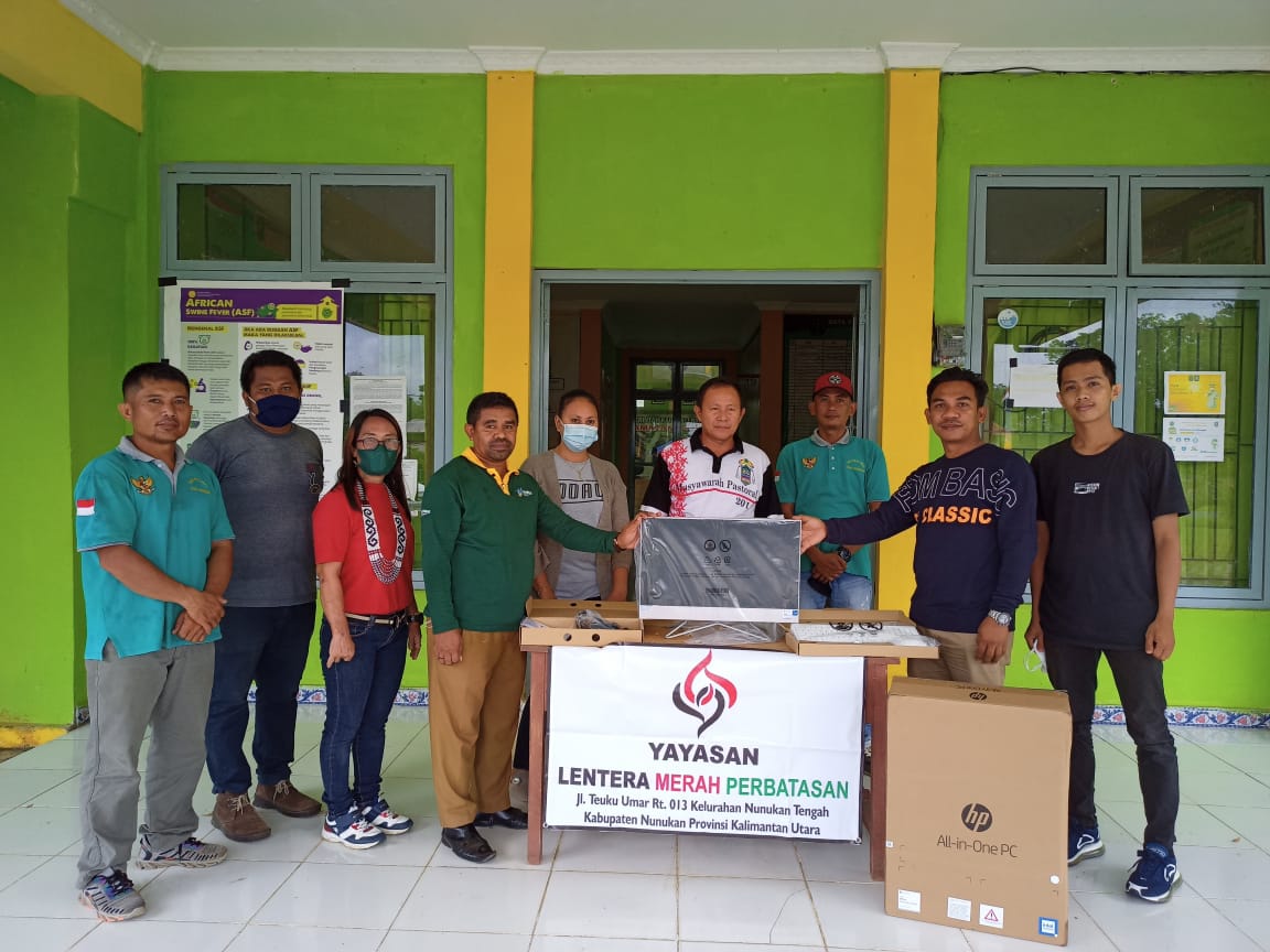 NUNUKAN, Kaltaraaktual.com– Yayasan Lentera Merah Perbatasan (LMP) Kabupaten Nunukan menyalurkan bantuan dengan memberikan sejumlah unit komputer untuk Kecamatan Kecamatan Tulin Onsoi, (09/11/21).